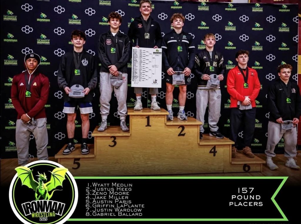 Top performers for coach Austin Headrick’s third place Tigers were second-place finishers Kaden Shroyer (120), Ryder Travelstead (126), Jonah Langlois (132) and also two individuals who claimed third place, Zachary Maglione (113) and Colton Carson (215).