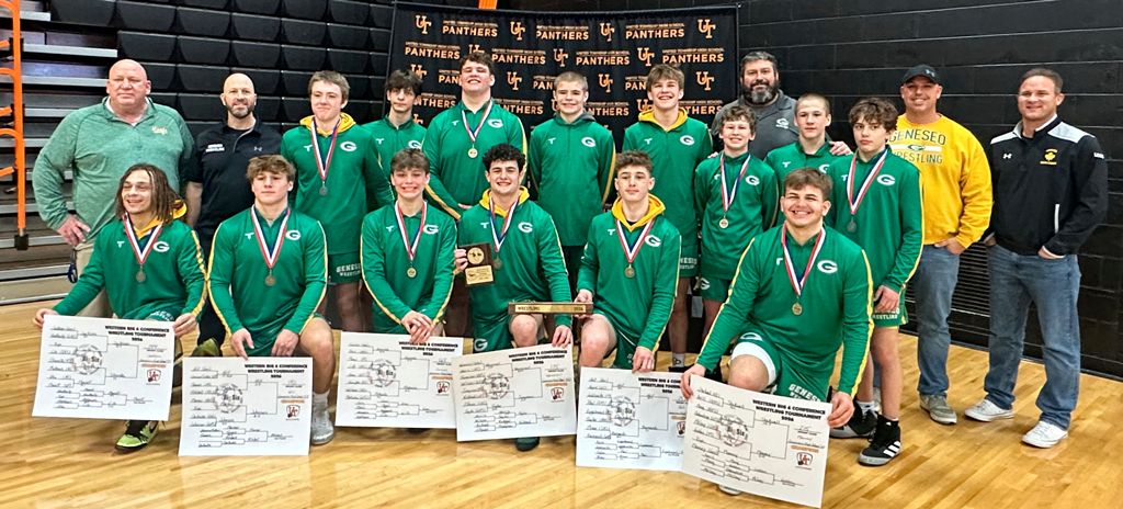 Freshman Stefan Vihrov recorded a tourney-high three tech-falls, 75 total match points, and his 23 single match points tied him with No. 1 Caleb Noble (Warren) who won his third straight league crown.