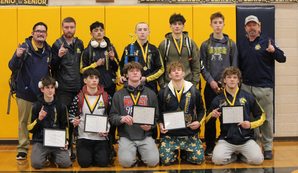 “Brody Kraemer is a freshman that we have never put on varsity before,” Spiwak said. “We knew we had a chance to bring the trophy home today, and Brody was willing to step up. He ended up starting off with a pin for us and earning four team points for the team. We won by 3.5 team points. Without Brody’s toughness, we would have lost today by 1/2 of a point.