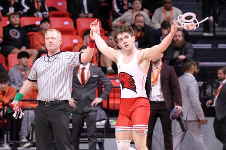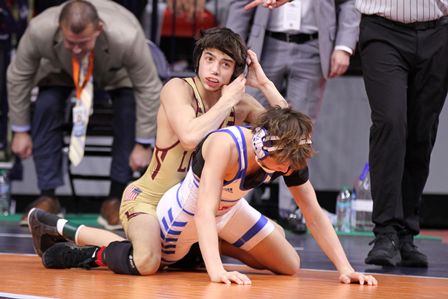 Once there, Cassioppi (46-2) would take a 4-0 second period lead with a near fall – then extend his advantage to 6-0 over No. 2 Ashton Hobson (Marmion Academy with just two minutes remaining.