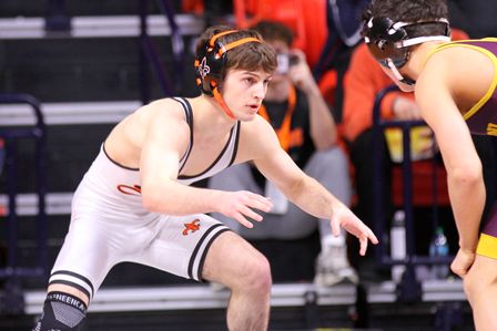 Using his customary high work rate, and non-stop pace to throw his opponents off their game, Cassioppi followed up his first two victories with a well deserved 11-3 semifinal victory over No. 5 Cohen Weber (Joliet West) to advance into his second straight state final.