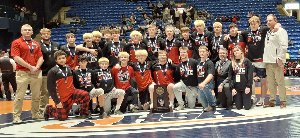 Coach Josh Carter’s Falcons finished with a 28-3 record and only had two losses to Class 1A teams, 56-17 to Coal City at Mahomet-Seymour on December 23 and 54-21 to Vandalia in the semifinals. Their 47-point win in the third-place match was the fourth-biggest in IHSA history and was the second-largest in Class 1A, with Olympia’s 64-15 triumph over Beardstown in 2017 the only time that a team in their class won by a larger margin for third place.