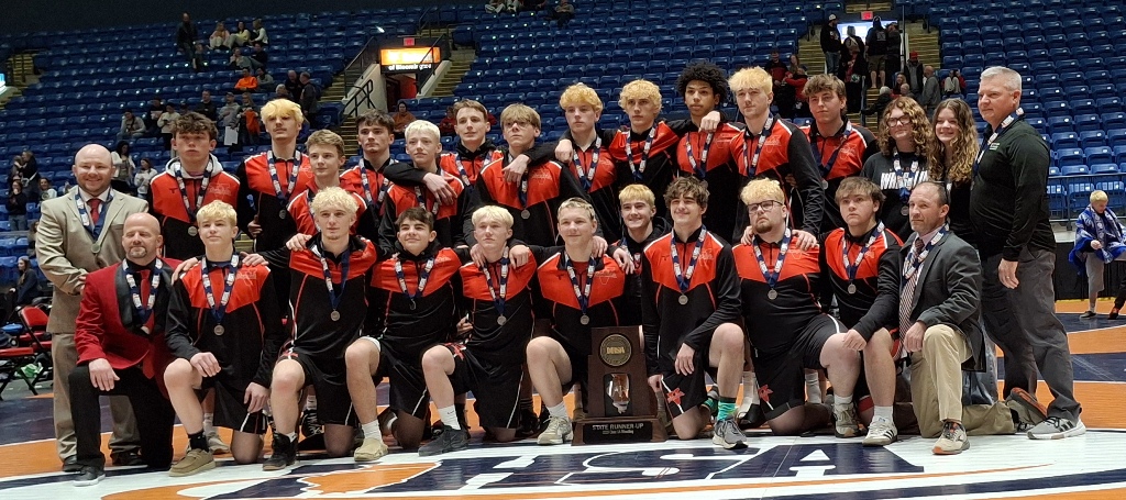 “We were second in the state to a team like Coal City,” Patrick Myers said. “They’re a tough group with obviously a lot of seniors and they came out and wrestled their butts off, so it was tough to win those matches. They got the job done, so hats off to Coal City, because that’s a very well-coached team, as well. (His Vandals) This is a good group right here. They battled their butts in the room and even though it didn’t show you at the state championship, they’re going to continue to push each other. I said it once, I said it before, we’re a family. And we hold each other accountable to do the right things and hopefully we’re back here next year. (His Class 1A-high three state champions: Preston Waughtel, Max Philpot and Dillon Hinton) That’s the most that we’ve had and the state champs show for themselves since they’re hard workers in the room. There’s guys chomping at the bit to get to that area in competition to be the state champs and we had a couple of state placewinners this year and hopefully they take this experience and it motivates them for next year.