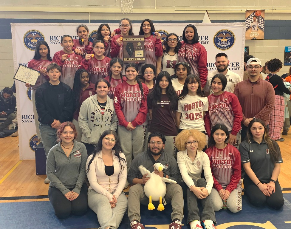 Morton coach Fernando Arratia got nine of his girls through to the sectional round, led by regional champions Andaira Marron (100), Karla Munoz (110) and Luissiana Guerrero (120), as Morton won its first team regional title in program history at Rickover Naval Academy. The Mustangs posted 193 points to edge second-place Lane with 185.