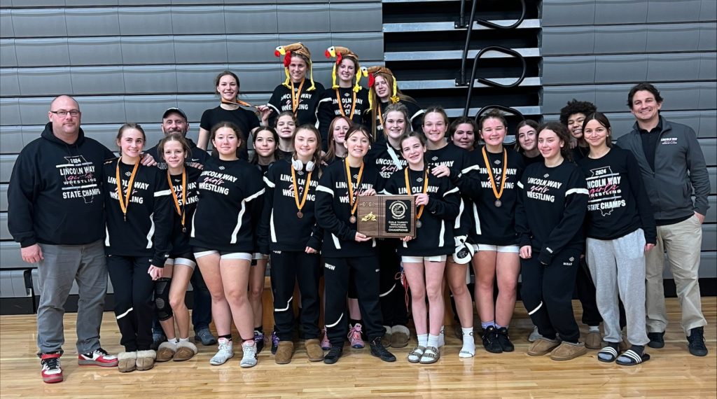 Lincoln-Way’s co-op team, consisting of girls from Lincoln-Way Central, Lincoln-Way East and Lincoln-Way West, enjoyed a very successful season in 2024-2025, by going 6-0 and winning 40-38 over Schaumburg to take first place at the IWCOA Girls State Dual Team Championship in Hoffman Estates and also capturing Antioch, Hampshire and Hoffman Estates invitational championships in addition to taking top honors at the Metamora Regional and claiming third place at the Geneseo Sectional.