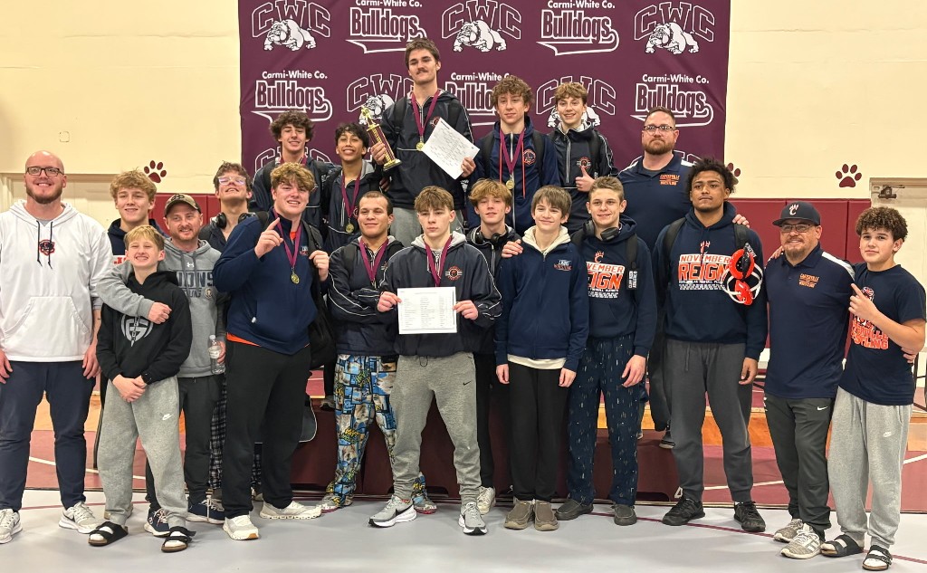 Effingham not only won its first tournament title of the season at the 15-team Urbana Wrestling Invitational, it did so in style by scoring 187.5 points, which was 46.5 points ahead of Normal Community’s junior-varsity (141) while Limestone edged Richwoods 140.5-136 for third place.