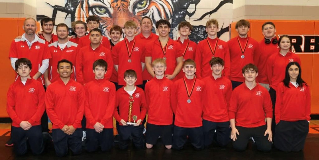 Leading the way coach Noah Fitzenreider’s champion Redhawks were title winner Nicolas Olivera (31-8 at 175) and second-place finisher Jacob Cochran (36-3 at 138) while Dalton Meluch (120) and Paul Peradotti (190) took third place, Jake Moore (126), Calum Bohan (157) and Caelon Young (215) finished fourth and Vince Bern (150) and Reid Balis (157) took fifth.